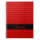 Notebook vermelho impressionante com na moda preto corações padrão de bolinhas - e seu nome