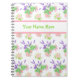 Um caderno espiral bonito e personalizável, com um padrão de Rosas cor-de-rosa, Blossom Laranja Mock branco cremoso e Lavanda roxa, de um design de aquarela pintado à mão por Judy Adamson.