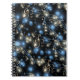 Douradas notas de música com luzes azuis de festas de feriado em preto. A cor de fundo pode ser alterada.