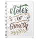 Uma revista maravilhosamente projetada com letras de pincel que diz "Notas de Crescimento", ideal para rastrear o progresso pessoal, autoaperfeiçoamento e desenvolvimento. Ideal para aqueles que procuram crescer e aprender todos os dias.