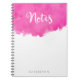 Um caderno espiral personalizado com uma letra de tendência que diz "Notas" no topo e personalizado com o seu nome no fundo. Um design giro giro usando uma pintura cor-de-água rosa brilhante.
