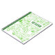 O notebook Alfabeto (Verde) é uma revista única verde e branca, que apresenta vários rabiscos das 26 letras do alfabeto em diferentes fontes, todos em um fundo branco. Disponível também em outras opções de cor. © Manhã 6