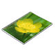 Enterrado na grama verde alta, está um borboleta amarelo ensolarado cintilante com gotas de chuva frescas.