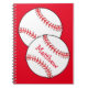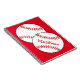Este notebook apresenta um baseball vermelho e branco cercado por um fundo vermelho. Personalize facilmente o texto para um fã desportivo especial ou remova-o completamente.