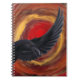 Notebook Black Bird Raven. Diário Raven Preto. O animal totem de muitos. Asas pretas rasas contra fundo vibrante vermelho e amarelo. Reorganize gráficos, jogue com cores, para ajustado do decoro doméstico. Excelente de um pássaro para aqueles que amam corvos, corvos e pássaros negros.