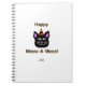 Agora você pode pedir meu adorável Dia das Bruxas de um gato negro vestindo um chapéu de Halloween, texto diz, "Happy Meow-A-Ween!" Agora vocês podem pedir meu desenho que eu chamo de, "Gato Negro Meow-A-Ween", neste caderno de fotos espiral.