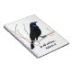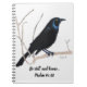 Este é um Notebook Espiral com uma imagem de um pássaro negro desenhado em Lápis Colorido e inclui um verso inspirador.