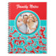 Acompanhe todas as informações importantes de sua família com este moderno e moderno notebook azul-turquesa, vermelho e branco floral damask com uma caixa de modelo para que você adicione sua própria foto e texto. Se precisar de ajuda para personalizar este item, envie um e-mail para niteowlstudio@gmail.com para obter assistência.