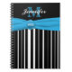 Este notebook monograma de listras azuis, pretas e brancas tem caixas de modelo para você adicionar seu nome, monograma, ano ou outro texto. Se precisar de ajuda para personalizar este item, envie um e-mail para niteowlstudio@gmail.com para obter assistência.
