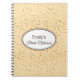 Mostrado em uma cor clara Champagne com estrelas ouro, este notebook apresenta um oval com a coordenação de bordas coloridas junto com seu nome personalizado dentro no oval. Texto mostrado em Castanho Chocolate. Personalize de acordo com os seus desejos ou comprares, conforme projetado.