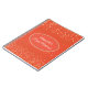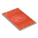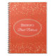 Notebook mostrado com um gráfico de estrelas petitas em ouro sobre fundo laranja tangerino com a frase "Notebook de noiva" dentro de forma oval com bordas coordenadoras. Personalize este item e mude o nome para o seu ou retire o nome, altere as cores da estrela no filtro, na cor de fundo ou no comprar como está. Coloração ouro, branca e tangerina.