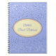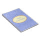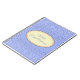 Notebook mostrado com um gráfico de estrelas petitas em cinza sobre fundo de periwinkle com a frase "Notebook de noiva" dentro de forma oval com bordas coordenadas de pêssego e branco. Personalize este item e mude o nome para o seu ou retire o nome, altere as cores da estrela no filtro, na cor de fundo ou no comprar como está. Cinza, Ivory, Periwinkle, Peach.