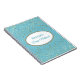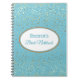 Notebook mostrado com um gráfico de estrelas petitas em ouro sobre fundo azul-céu com a frase "Notebook de noiva" dentro de forma oval com bordas coordenadoras. Personalize este item e mude o nome para o seu ou retire o nome, altere as cores da estrela no filtro, na cor de fundo ou no comprar como está. Ouro, cor branca e azul-céu.