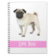 Amor à primeira vista...Que resiste ao lindo rosto do cachorro Pug. Este notebook giro apresenta um filhote de cor preta em um fundo branco. As palavras Love Pugs são impressas em letras brancas em uma bonito banda rosa abaixo do cachorro. Um caderno Doggy vai fazer um presente de excelente para você ou para o amante especial de cachorro na sua vida. Toda vez que você abre o seu notebook, esse giro do Rottie Pup te fará sorrir.