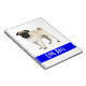 Amor à primeira vista! Que resiste ao lindo rosto do cachorro Pug. Este notebook giro apresenta um filhote de cor preta em um fundo branco. As palavras Love Pugs são impressas em letras brancas em uma banda azul real abaixo do cachorro.