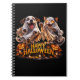 Ideas and autumn plans in this ghostly best friends spiral notebook this high detail cover features an adorable dog and a mischievous cat dressed in flowing white ghost sheets complete with glowing orange eyes and happy expressions set against a sleek black background with a bold happy Halloween greeting and flickering Jack O lanterns this notebook brings a touch of creepy cute charm to your desk whether you're using it for school journalling or keeping track of trick or treat roots this durable notebook is a must have for pet lovers and Halloween Enth