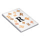 Carta de sua escolha em laranjas. Atualmente, é apresentada a letra "R". Uma grande letra central de preto é rodeada por quatro letras ligeiramente menores, e dez letras ainda menores são embaralhadas em volta da letra central e apresentadas em vários tons de laranja e marrom. ***Parte do conjunto coordenado - bkm2q4.