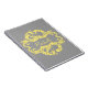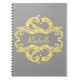 Notebook elegante e sofisticado para o Damasco Chic, com fundo de cinza macio e um ornamento na moda de damasco, floresce em amarelo. Esta design moderna é fácil de personalizar com o seu próprio texto. Clique em "Personalizar" para encontrar mais opções de personalização.