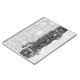 O musical Jazzy temia um bloco de notas preto e branco com um desenho de carvão da articulação superior de um clarinete. Design inclui um lugar para personalizar com suas iniciais. Arte original de Angela Hoard-Dunn.