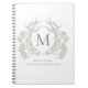 Caderno Espiral Notebook Classic Sage Green Floral Crest Monograma