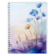 Notebook floral a cor de água, cor d'água da paisagem floral estética, floral seca botânica com blues legal e tons beges