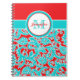 Este moderno e moderno notebook floral azul-turquesa, vermelho e branco, monograma, tem modelo para você adicionar seu nome, iniciais, monograma ou outro texto. Se precisar de ajuda para personalizar este item, envie um e-mail para niteowlstudio@gmail.com para obter assistência.