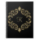 Monograma deste lindo notebook ou moente preto e dourado com cor damasco brilhante (não com brilho real). Adicione a sua inicial.