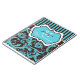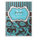 Este damasco floral branco, azul-aqua, castanho e branco personalizado com livro de anotações de listras tem caixas de modelo para você adicionar seu nome, monograma ou outro texto. Se precisar de ajuda para personalizar este item, envie um e-mail para niteowlstudio@gmail.com para obter assistência.