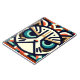 Um rosto de gato ranzinza estilizado em um design geométrico ousado com tons de chel, creme e laranja — perfeito para amantes de gatos com atitude e amor por arte peculiar.