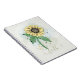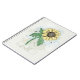 Notebook com girassol amarelo-aquarela em estilo de rabisco na frente, com "fé" escrita abaixo em letra suave (pode ser mudada para palavra ou nome da sua escolha).