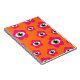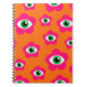 Notebook com um cobrir retrorreflector colorido: Flores cor-de-rosa com olhos mau nos centros, com fundo laranja vibrante. presente de excelente para amantes retro!