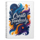 Notebook na moda com a citação "Crie sem medo" com pinceladas vibrantes em azul, laranja e roxo. Parte da série sem medo da SvietWorks - projetada para criadores, pensadores e rebeldes cotidianos. Perfeito para notas, esboços, planos e ideias. Disponível em formatos alinhados, vazios ou pontilhados.