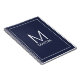 O design moderno minimalista apresenta um monograma personalizado e o nome no estilo de fonte branco moderno sans serif em fundo azul marinho.