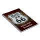 Fotografia do escudo da Rota 66 dos EUA na construção de madeira com o texto "Road Trip Planner" (personalizável) impresso abaixo. Foto de Hans Braxmeier.