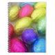 Este caderno espiral brilhante e divertido apresenta ovos de Páscoa de chocolate revestidos com folha de alumínio brilhante. Uma adição perfeita a qualquer cesto de Páscoa.