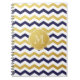 Caderno Espiral Notebook Dourado e Marinho Blue Chevron Monograma