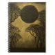 Notebook Grungy e legal Dark Forest Eclipse em ouro apresentando uma cena de floresta tranquila com um eclipse lunar. Este caderno de arte digital seria excelente para o seu escrevendo poético ou outra anotação. Personalize com seu próprio texto.