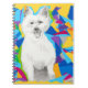Um caderno espiral com o meu trabalho de arte.