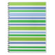 Este notebook com listras azul e verde é perfeito para gravar e registrar. Design do artista Becky Volk.