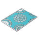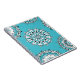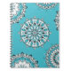 Um notebook em espiral com meu padrão Mandala 1, impresso em fundo azul. Esta versão se concentra no meu Design 2 Mandala.
