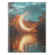 Esta bela e única imagem de uma lua crescente mágica sobre um corpo de água cintilante, cercado por árvores de cheio, faz com que este caderno seja apreciado. Perfeito para fazer jornalismo de seus sonhos, esperanças e metas.