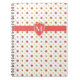 Notebook espiral ou Diário para personalizar com seu Monograma ou Iniciais, com um padrão de Bolinhas Vermelhas, Verdes e Amarelas em um Fundo Branco. Parte da coleção Posh & Painterly 'Rangoli'.