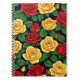 Este notebook espiral apresenta um padrão vibrante de rosas vermelhas e amarelas contra um fundo verde rico, colocado contra um fundo preto profundo. Ideal para notas diárias, jornalismo ou como um presente floral ponderado.