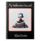 Uma imagem digital de um vampiro fofo e rabugento sentado numa rocha. As palavras no topo (Diário de Halloween) e no fundo (Elisa Gotic) podem ser facilmente substituídas por quaisquer palavras que você queira ver ali.