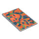 Notebook espiral atraente, adequado para uso como revista, com padrão de abstrato em cores vibrantes - Laranja Flamejante, Azul Meia-Noite e Verde Profundo, de um design digital de Judy Adamson