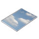 Este incrível notebook apresenta uma fotografia de algumas nuvens brancas cúmulo fluffy flutuando livremente através de um belo céu azul.