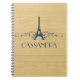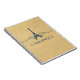 Notebook francês florescente elegante e chico com fundo de aparência falsa de grão de madeira e design de torre Eiffel em azul escuro enfeitado com cascatas de espirais na moda. Esta design de moda e moda é fácil de personalizar com o texto personalizado de sua escolha. Clique em "Personalizar" para encontrar mais opções de personalização.