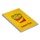 Ilustração de desenho animado de pequenas embalagens de batatas fritas em fundo sem costura de comida de lixo amarelo. Texto personalizado.