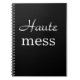 O ditado bonitinho, Haute Mess em um fundo negro, acentua este notebook, fazer-o perfeito como presente para um amigo ou para você.