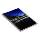 O notebook é mostrado com uma impressão de foto de um belo pôr do sol no Havaí. Personalize este item ou comprar como está. Imagem do stock